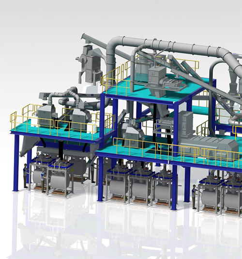 废旧锂电池回收处理设备的主要作用是对废旧锂电池进行回收、分离、提取和再利用。该设备能够将废旧锂电池中的有用物质进行分离,如正极材料、负极材料、电解液等,从而实现对这些有用物质的再利用。同时,该废旧锂电池回收处理设备还能够对废旧锂电池进行无害化处理,避免其对环境造成污染。所以废旧锂电池回收处理设备首先具有较高的废旧锂电池回收效率,能够将废旧锂电池中的有用物质进行高效分离,其次废旧锂电池回收处理设备要具有环保性,废旧锂电池回收处理设备要采用无害化处理技术,能够将这些有害物质进行有效去除,从而保护环境和人类健康,最后,该设备要具有较高的处理能力。废旧锂电池的数量庞大,因此需要一种处理能力强的设备来应对。废旧锂电池回收处理设备采用先进的工艺和技术,能够快速、高效地处理大量的废旧锂电池,从而满足客户的需求。 我司根据市场锂电池破碎回收设备及客户需求,自主设计研发了一整套锂电池破碎回收设备的解决方案